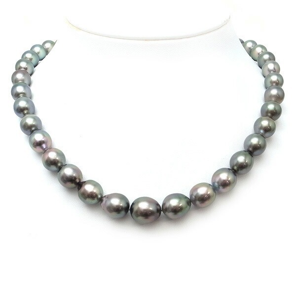 | コメント | 普段使いから冠婚葬祭まで幅広くお使い頂けるミキモト(MIKIMOTO)のブラックパールネックレスです。9.0~11.5mmと存在感がある南洋ブラックパールを使用し、黒蝶真珠ならではの複雑で奥深い色合いを楽しめます。胸元に神秘的な輝きを纏わせ、装いをエレガントに彩るジュエリーです。 パールの数ヵ所に特有のエクボが見られます(画像参照)。 総重量57.8g 緑屋商品番号:5009838 | | 程度 | 中古Aランク | | 素材・色 | K18WGクラスプ | | サイズ | ネックレス43.5cm | | 付属品 | サークルMチャーム付 ギャランティーカードなし 箱なし |