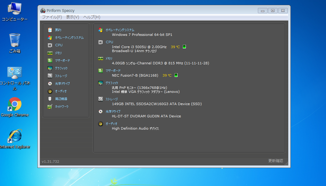 - Windows 7,8,10 選択可 NEC VersaPro VF-S Core i3-5005U 2.00GHz/メモリ4GB/SSD160GB/マルチ/無線/カメラ/便利なソフト/リカバリ作成/1942