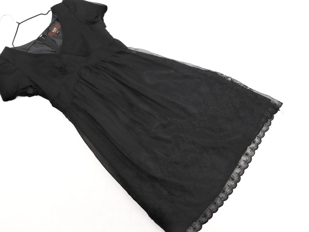 - ネコポスOK ROPE ロペ シルク100% スカラップ Aライン ワンピース size7/黒 ■◆ ☆ ffb9 レディース