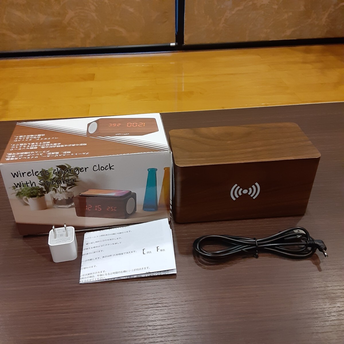 - ブルートゥーススピーカー ワイヤレス充電機能付きクロック