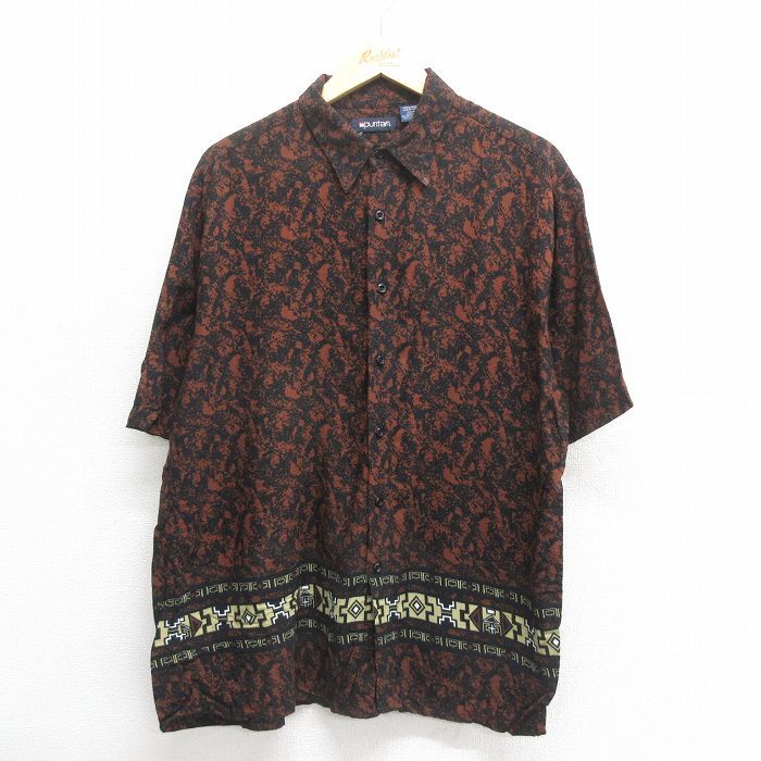 - L/古着 ピューリタン 半袖 シャツ メンズ 00s レーヨン こげ茶他 ブラウン 25jun18 中古 トップス