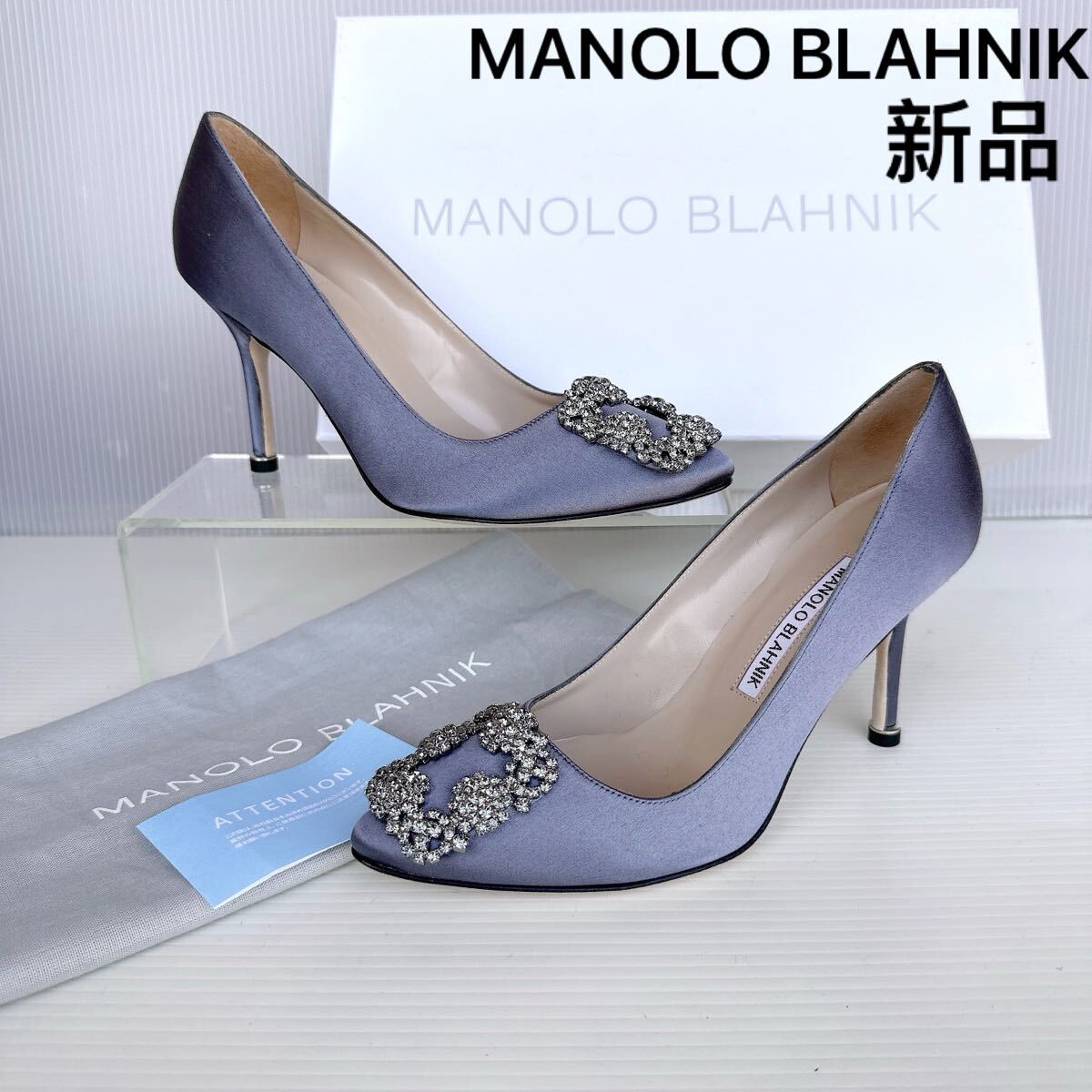 - MANOLO BLAHNIK HANGISI マノロブラニク ハンギシ ビジュー バックル ハイヒール パンプス 34.5 新品 レーディス シューズ 靴 グレー