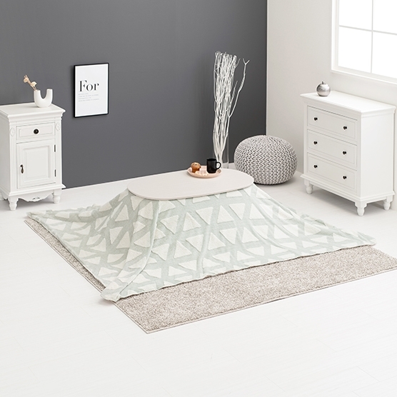- こたつ+うす掛け布団 2点セット(ホワイトウォッシュ/グレー(三角)) カルミナ950WS+スノウ950TGY