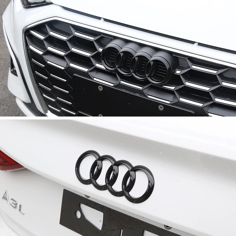 - グロスブラック 2 個 abs アウディ 4 リングフロントとリアのロゴアウディ A3 A4 B9 A6 Q2 Q3 Q5 車グリルトランクステッカー