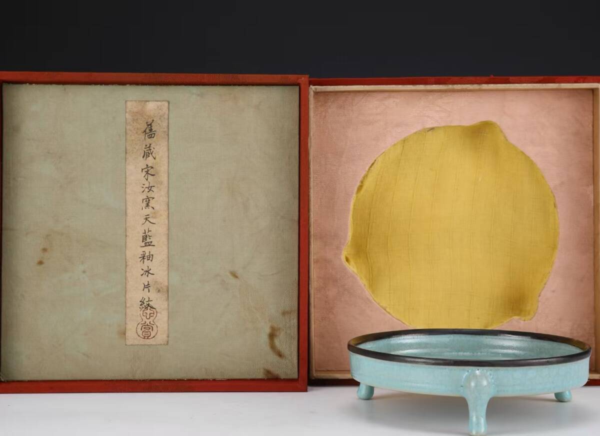 > 磁器 筆洗い 秘藏 宋代 汝窯天藍釉氷片紋三足洗・酒器 茶器 唐磁 染付 陶磁器 收蔵品 古美味 時代物 古美術 古置物 希少珍品 中國文玩6.22