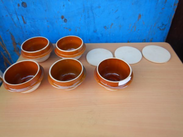 - 釜めし 駅弁 飯碗5つ ふた3つ 040901 14H7.5CM 昔の駅弁当 昭和レトロ
