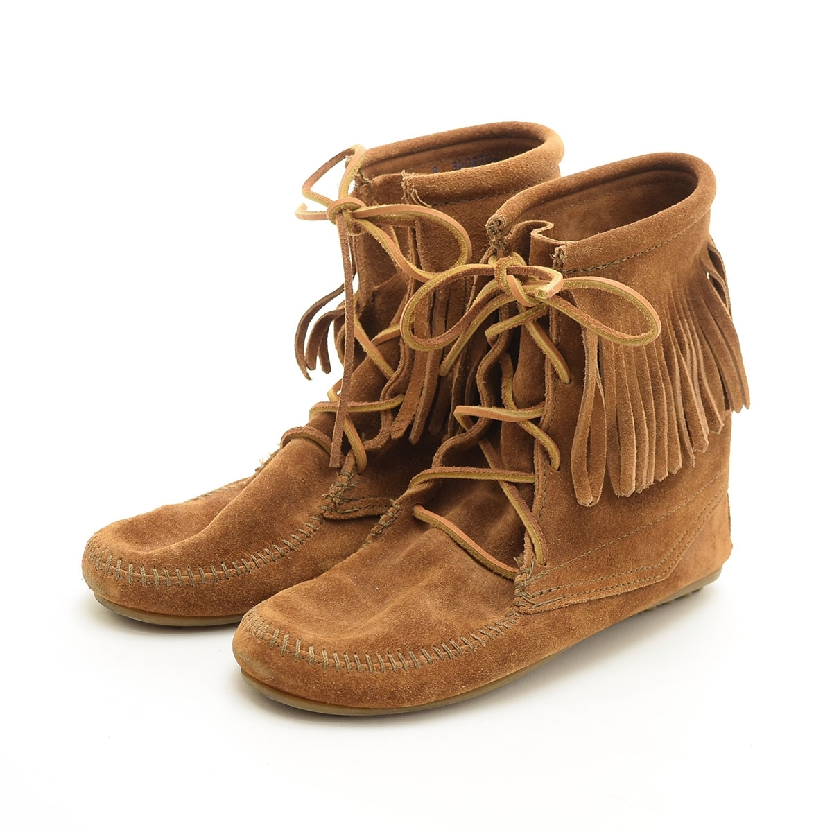 - □531706 MINNETONKA ミネトンカ ○ショートブーツ 422 スウェードフリンジブーツ サイズ8(25.0cm相応) レディース ブラウン