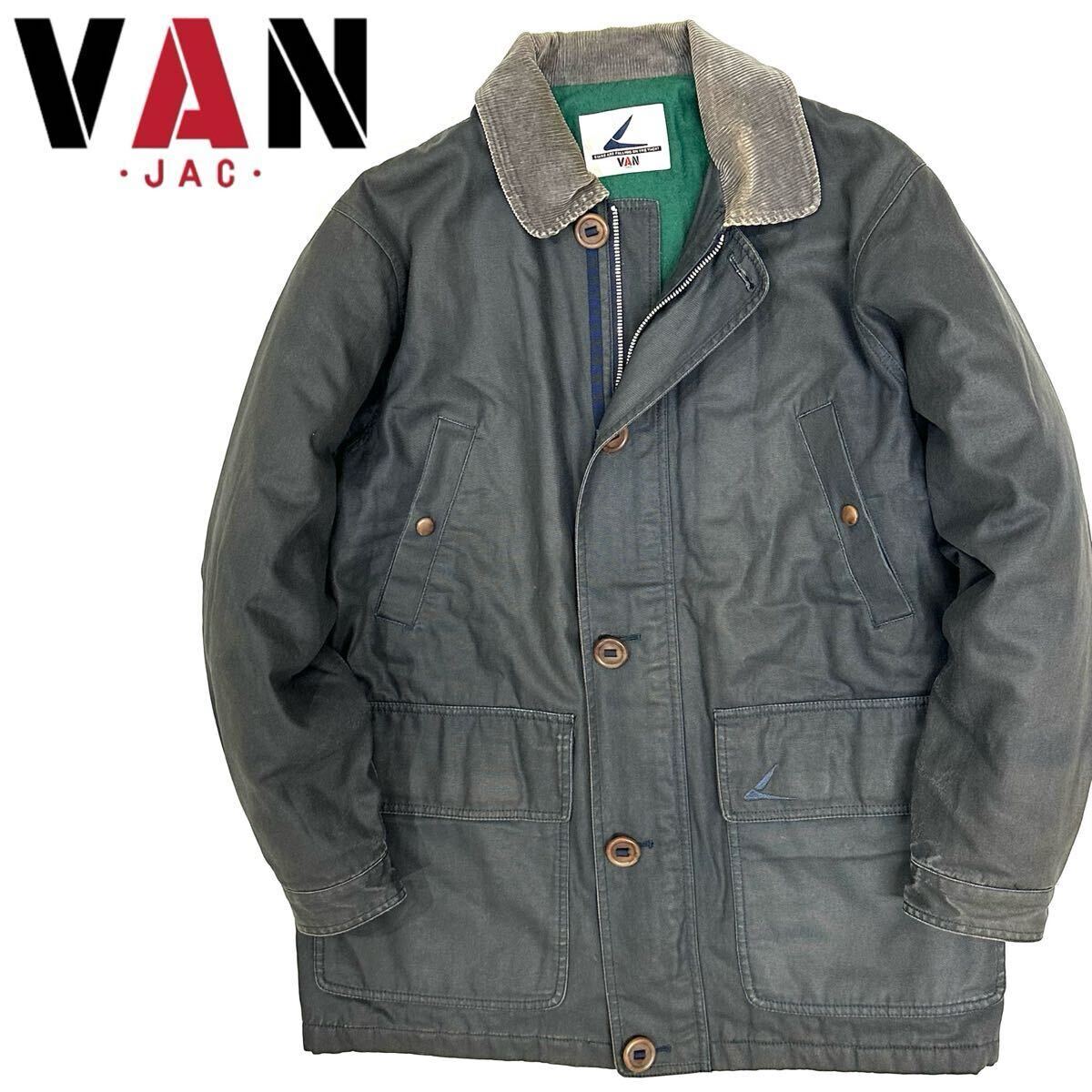 > VAN JAC 中綿入り コットン コーティング ハンティングジャケット(M)カーキグレー メンズ アウター 当時物 ヴァンヂャケット