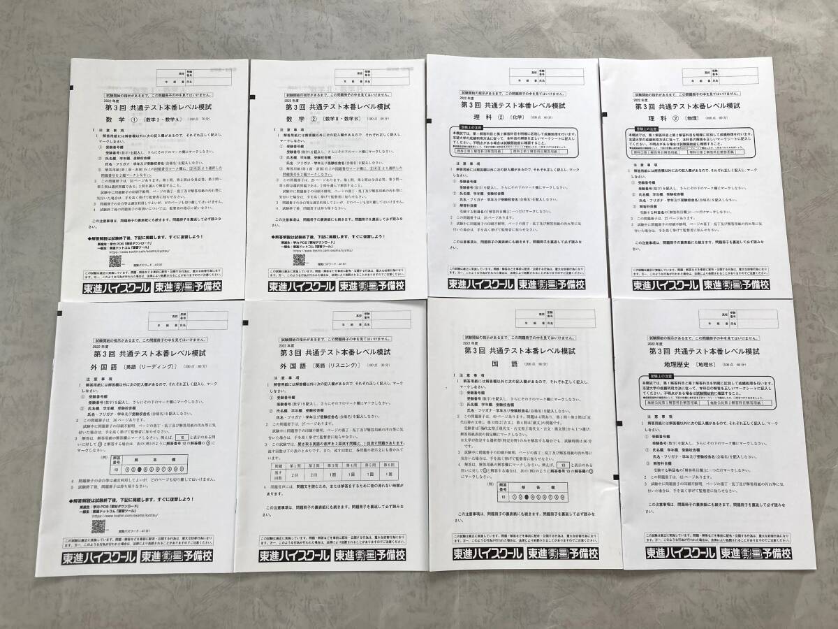 - 東進 共通テスト本番レベル模試 理系 英数国理地歴 2022年度 第3回
