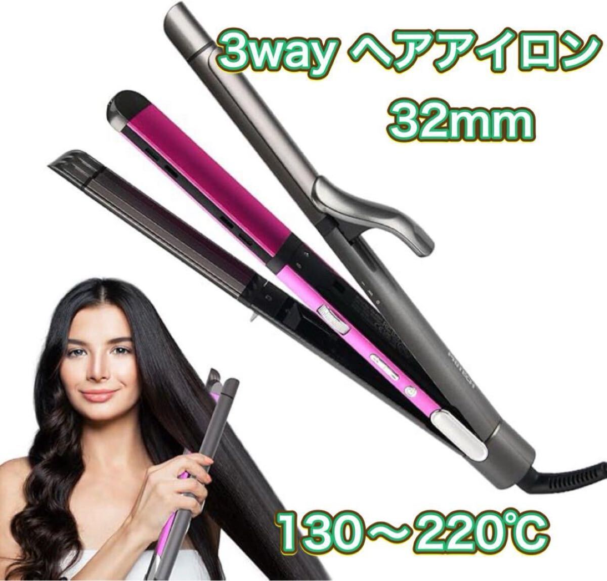 - 3wayヘアアイロン 32mmカール/ストレート両用 多段階温度調節(130-220℃)&45分自動オフ 急速加熱 ストレートアイロン