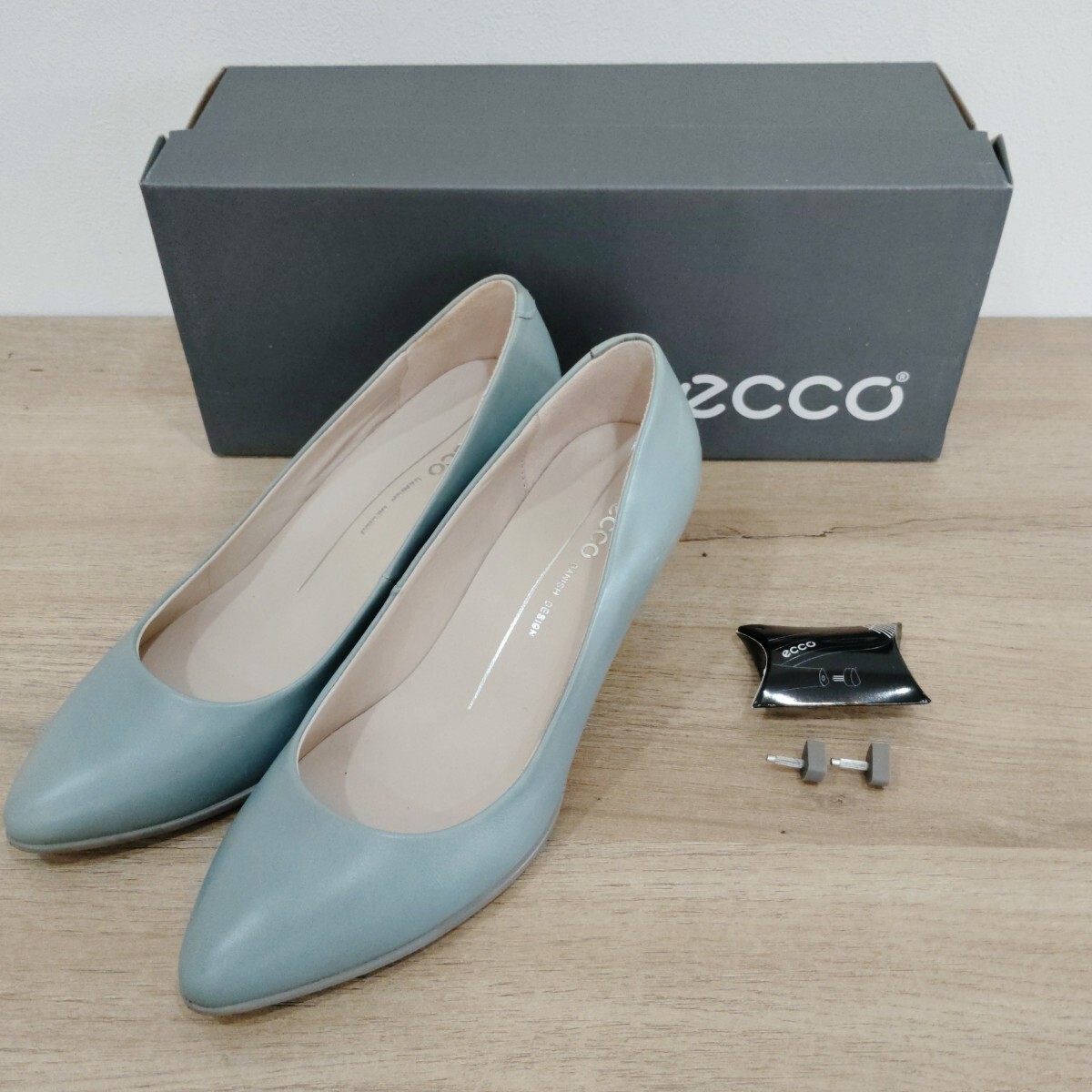 - ecco パンプス ヒール 22.5cm 青緑 ブルーグレー レディース