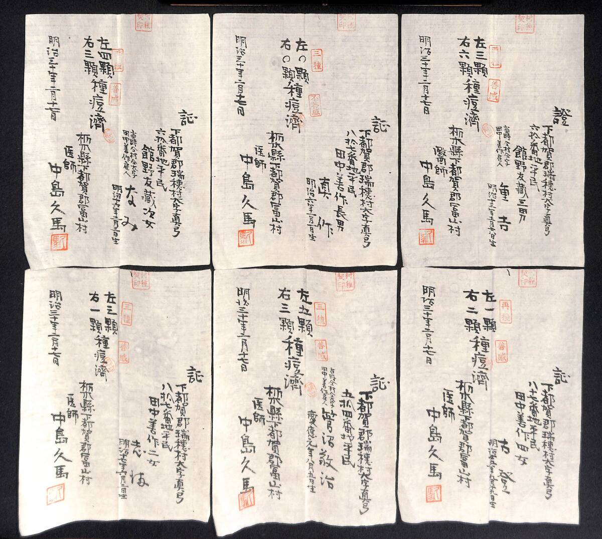 - 種痘証20点 明治10~30年 栃木県下都賀郡 富山村 真弓村 瑞穂村/古文書【25-0601-107】