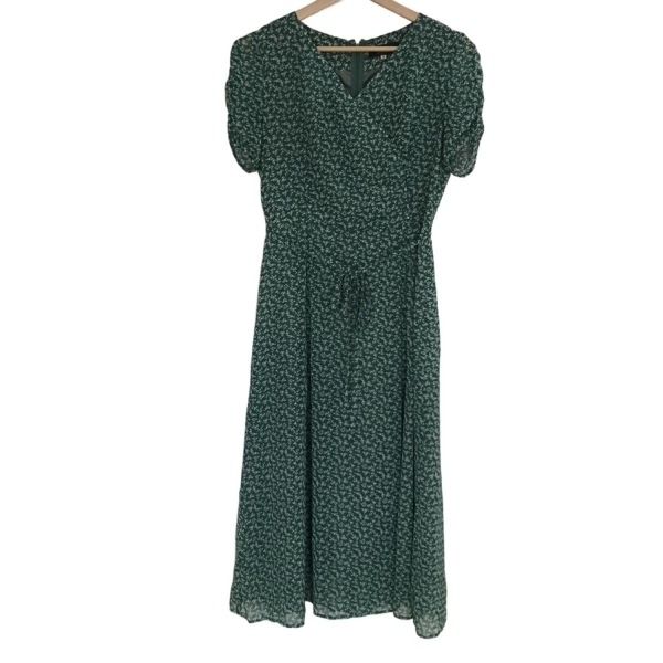 > ジャスグリッティー JUSGLITTY サイズ2 M - グリーン×白 レディース Vネック/半袖/ロング/花柄 ワンピース