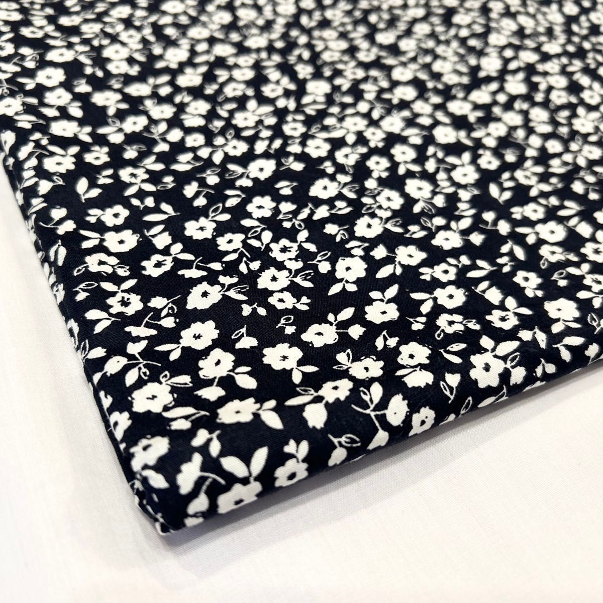 - RF3 プリント フラワー コットン100%生地 レトロお花③黒 幅140cm×48cm ハギレ 生地 ハンドメイド 輸入
