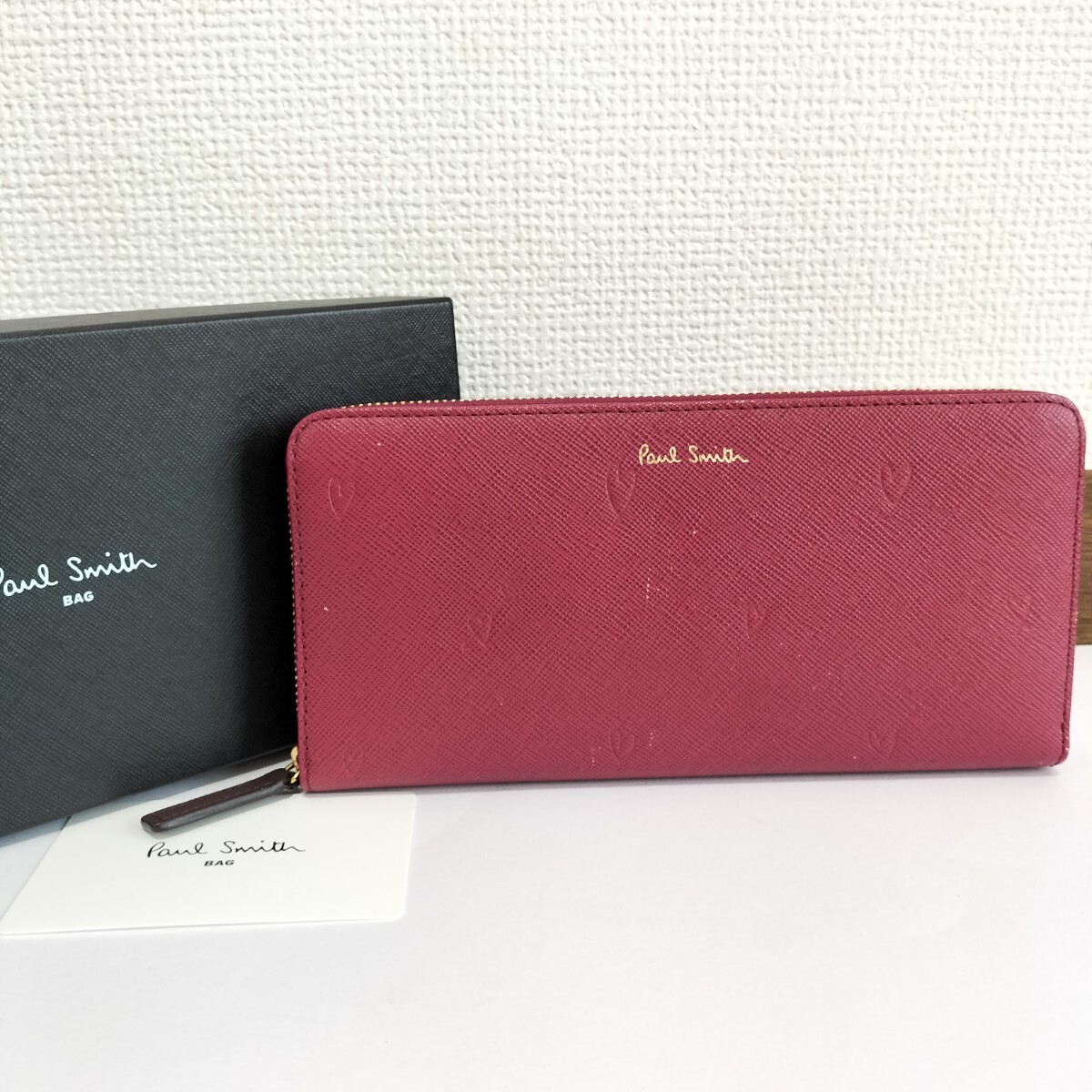 - 【ポールスミス】本物 Paul Smith 長財布 スミシーハート ロゴモチーフ ラウンドファスナー 小銭入れ有り パープル色 レザー レディース 箱