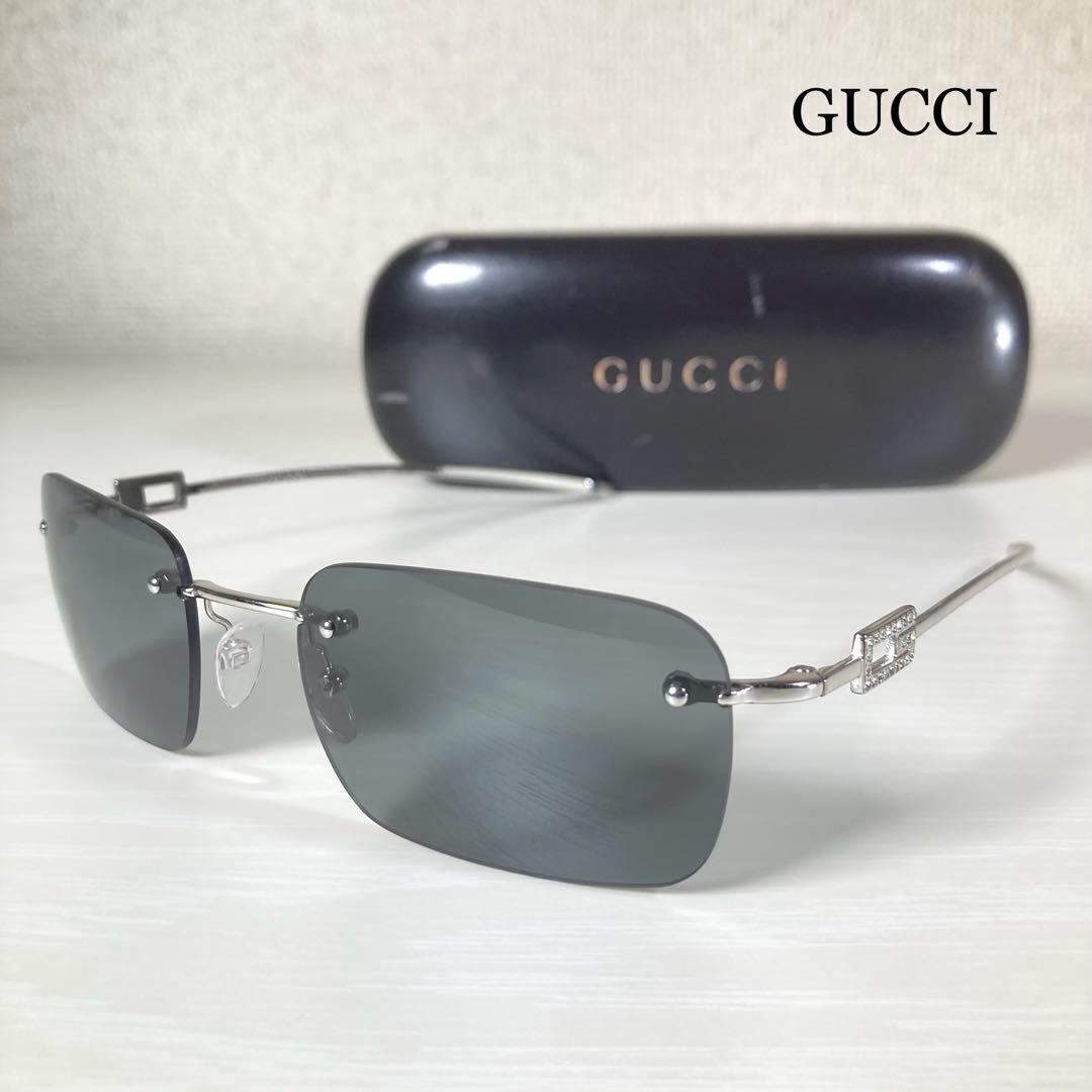 - 美品 GUCCI グッチ サングラス ラインストーン Gロゴ ケース付 リムレス スクエア ユニセックス
