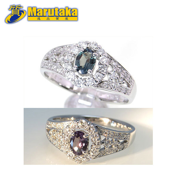 > 【Pt900 0.20ct アレキサンドライト ダイヤモンド リング】11.5号 鑑別書付 指輪 プラチナ カラーチェンジ おしゃれ 上品 中古 13r143