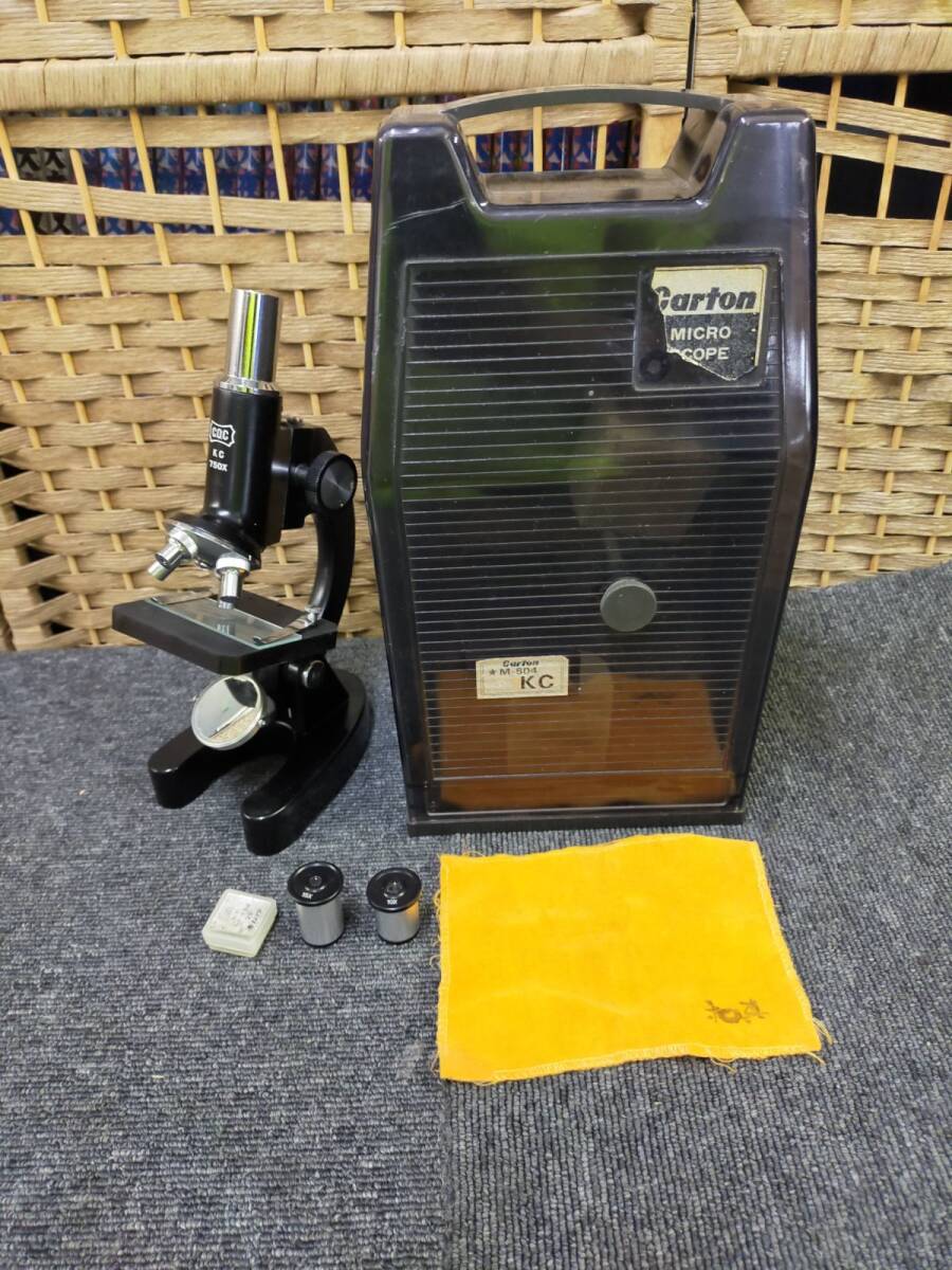 - E13-20250624-20【顕微鏡セット】Carton KC 750X ケース付き 学習用顕微鏡 C.O.C 交換レンズ スライドガラス付き