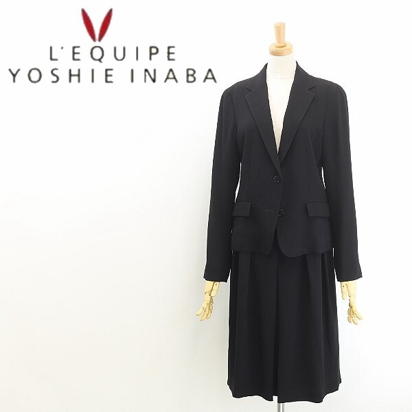 > ◆L'EQUIPE YOSHIE INABA レキップ ヨシエイナバ 2釦 ジャケット&タック スカート スーツ セットアップ 黒 ブラック 38