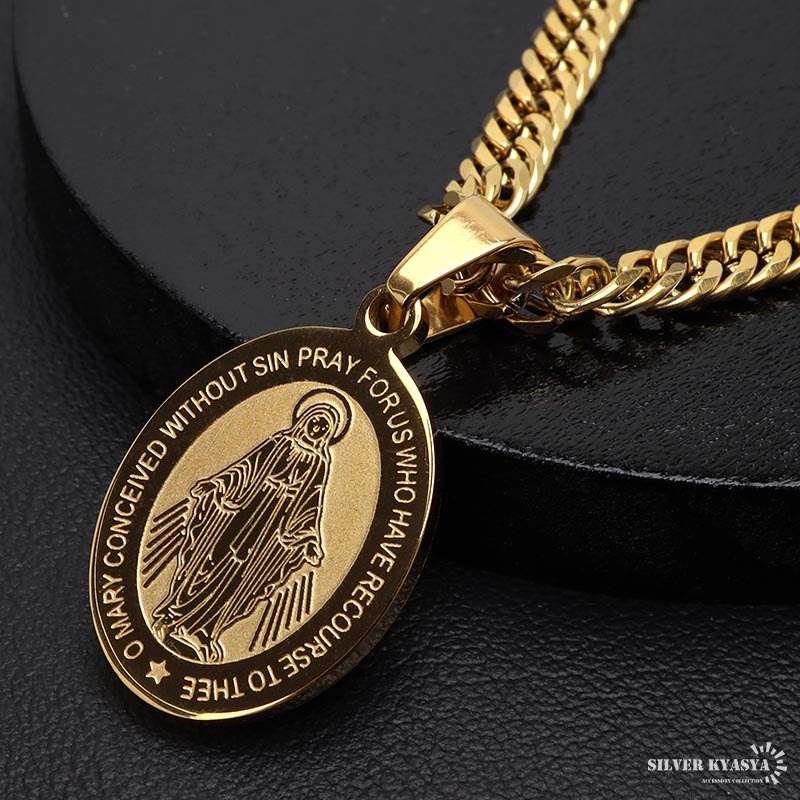 - (60cm) ステンレス マリアネックレス コインネックレス ゴールド 18KGP ダブル喜平チェーン 男性 メンズ 金アレ対応