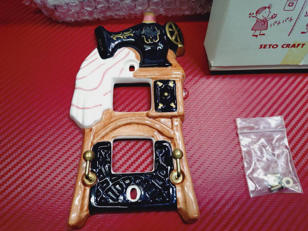 - 新品未使用★スイッチカバー★陶器★キーフック付(鍵かけ)★二口用、リノベ、アンティークミシン柄★送料¥185