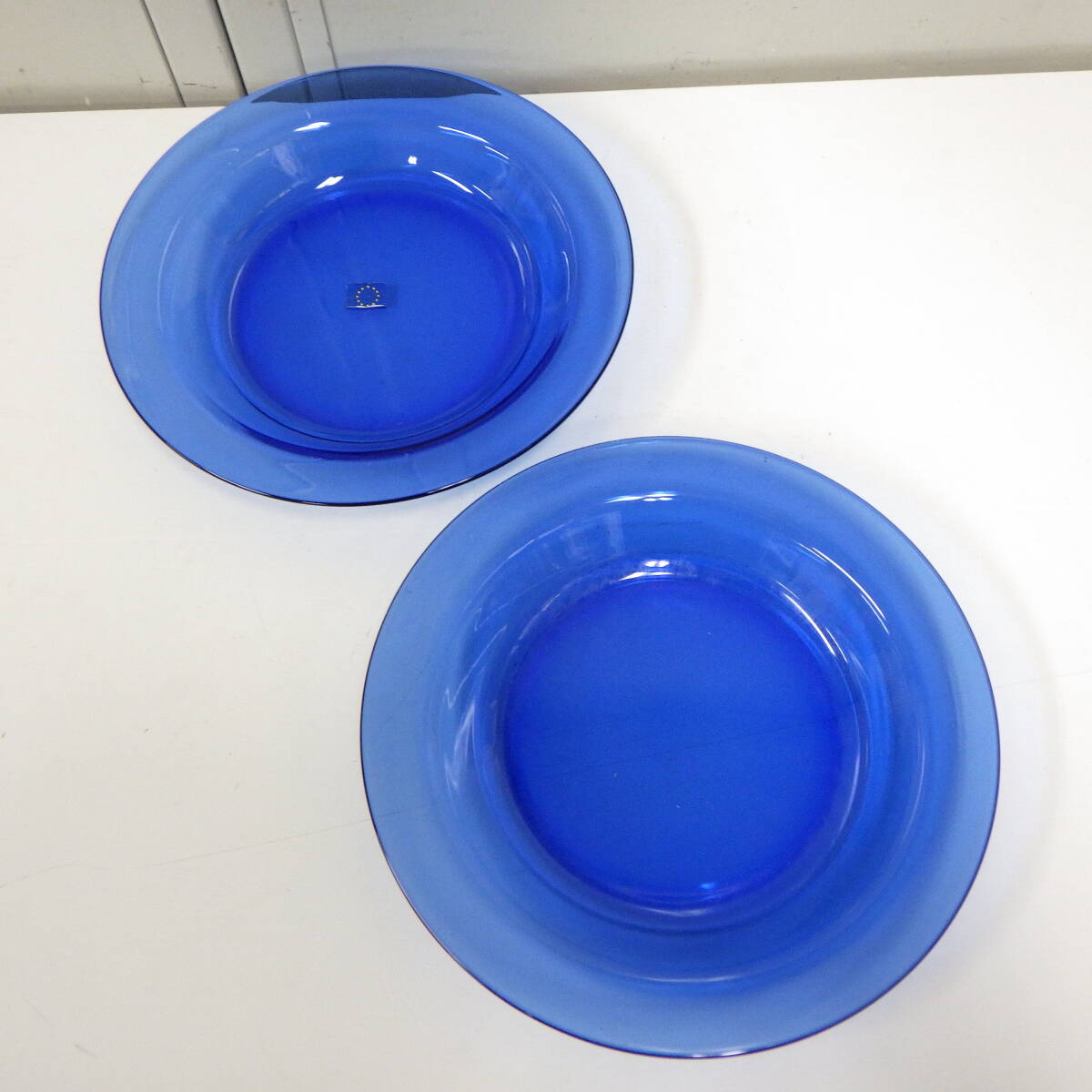 - 昭和 レトロ Arc International アルコロック 強化グラス ブルー 青 お皿 皿 2枚セット ガラス 色ガラス パスタ フランス