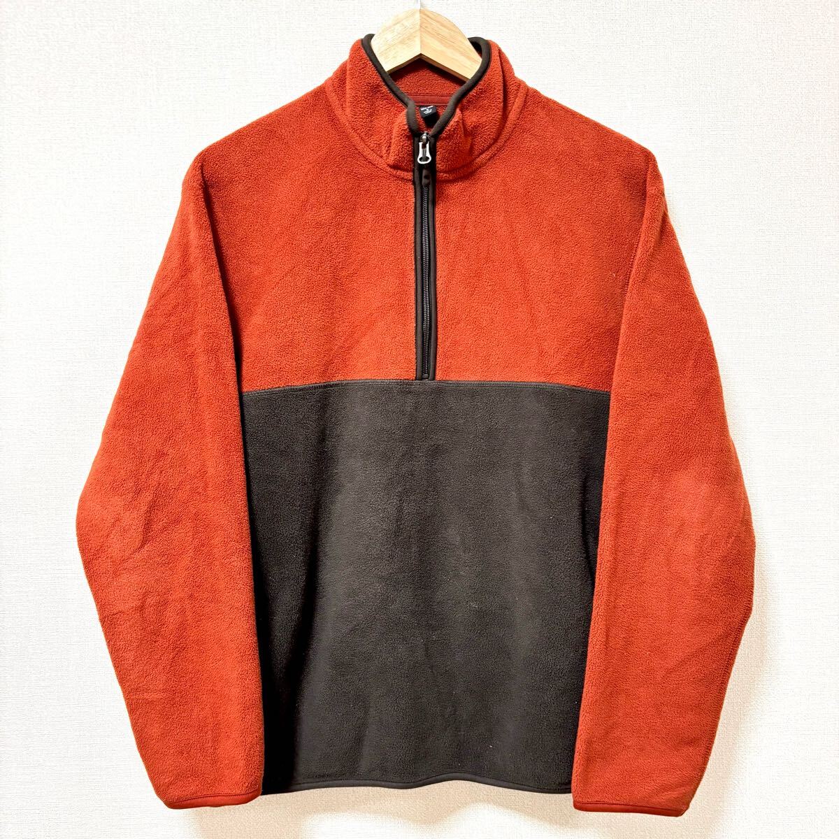 - バイカラーデザイン◎【UNIQLO】ユニクロ フリース プルオーバー オレンジ 茶 ハーフジップ アウトドア 登山 メンズ サイズM/Y33210SS
