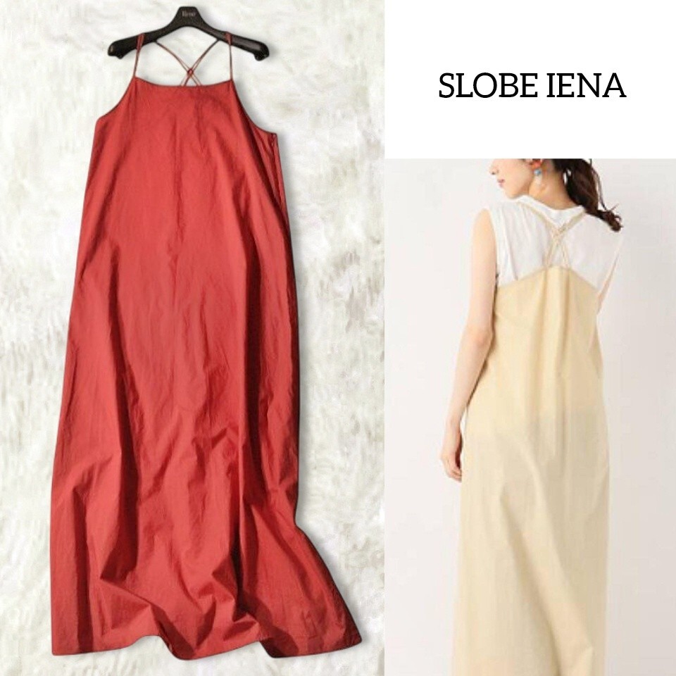 > 69 【SLOBE IENA】 スローブイエナ キャミソールワンピース ロングワンピース 日本製 レッド 赤 コットン 綿 春夏 シンプル 無地 薄手
