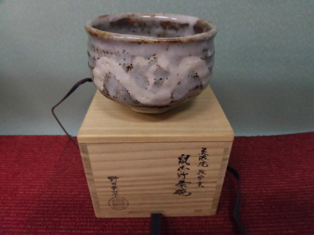 - ★野田東山作/長曽窯/美濃焼/鼠志野茶碗/ 共箱付/茶道具/未使用品★保管品★