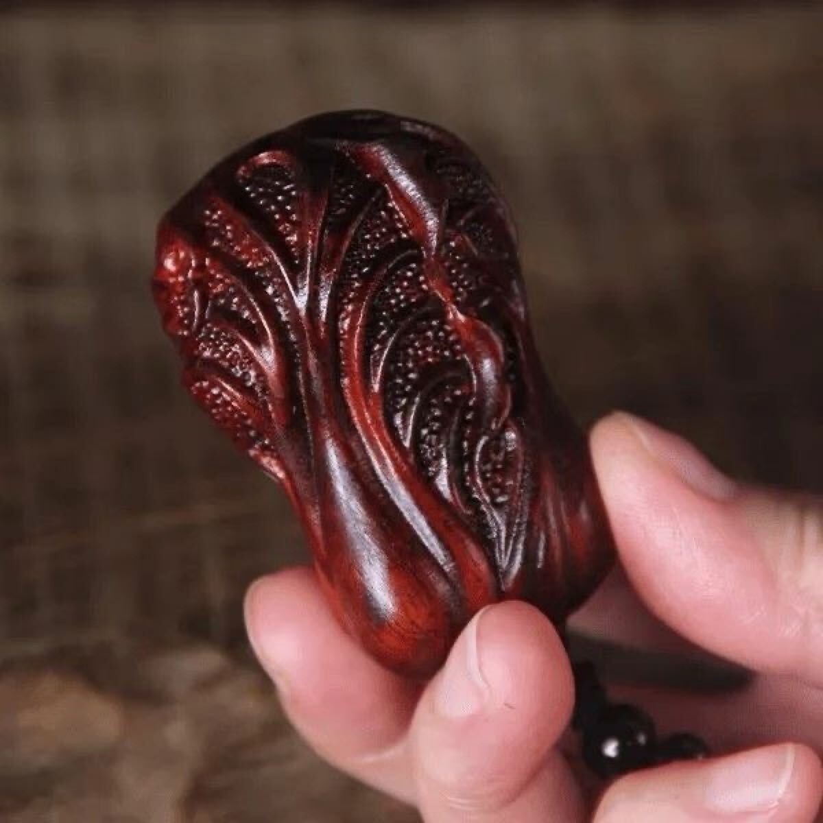 - 紫檀木製 白菜モチーフ置物 開運招財 木彫インテリア ギフトにも最適 細工彫刻白菜 縁起物金運 古美術 お守り 風水 旧家蔵出し 彫刻 根付