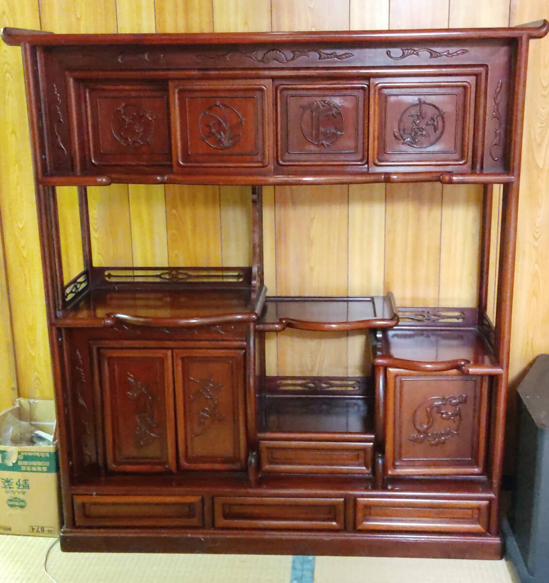 - 22)福島県南発 花梨 飾棚 4尺 128cm×120cm 和風 サイドボード 茶棚 飾り棚 カリン 手渡し 引取 定価50万円 (送11270~