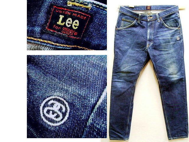 > ◇即決[W34]サンプル級の鬼ヒゲ STUSSY Lee 別注 星 スター 刺繍 14.4oz 限定 コラボ スリム STUSSY REG デニム LB0009 パンツ■5086