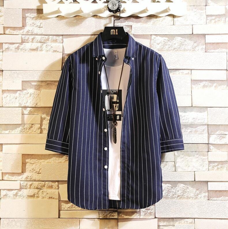 - 夏新品 七分袖シャツ ストライプ柄 スキニー メンズ ボタンダウンシャツ トップス カジュアル 夏服 ワイシャツ タイプ 2XL ZCL490