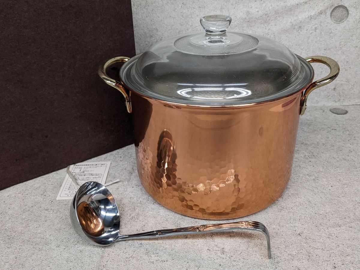 > ff315■【デッドストック】杉山金属 シチューポット 銅鍋 両手鍋 20㎝ 台所用品 ガラス蓋 キッチン雑貨 昭和レトロ/80