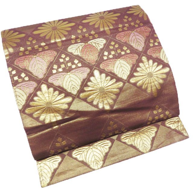 - 作り帯 付け帯 つけ帯 中古 リサイクル 正絹 フォーマル 仕立て上がり 桐文 菊菱文 箔糸 茶色 金 きもの北條 A1222-6