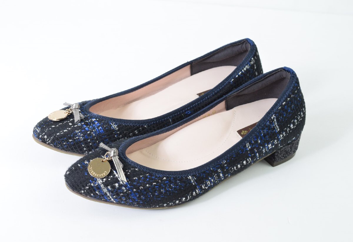 - 5000-SS00180★La creative?★未使用 美品 紺黒ツィード ローヒールパンプス 23.0 疲れにくいインソール
