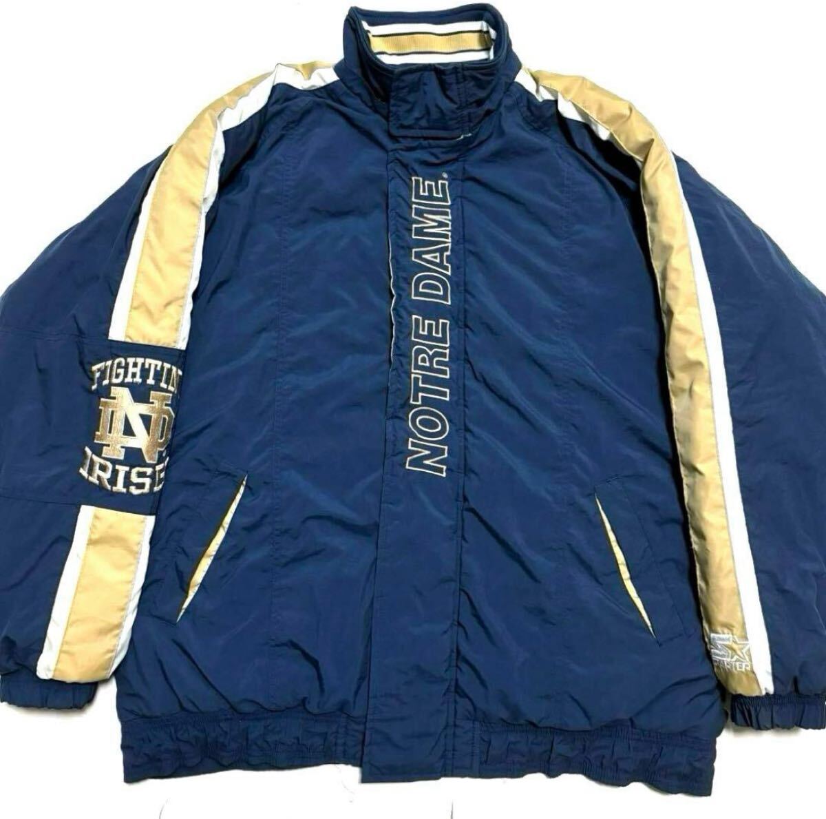 > L 美品 紺 スターター ノートルダム 中綿 ナイロン ジャケット 古着 ゆるだぼ オーバー ビッグ y2k 00s 90s ファイティングアイリッシュ