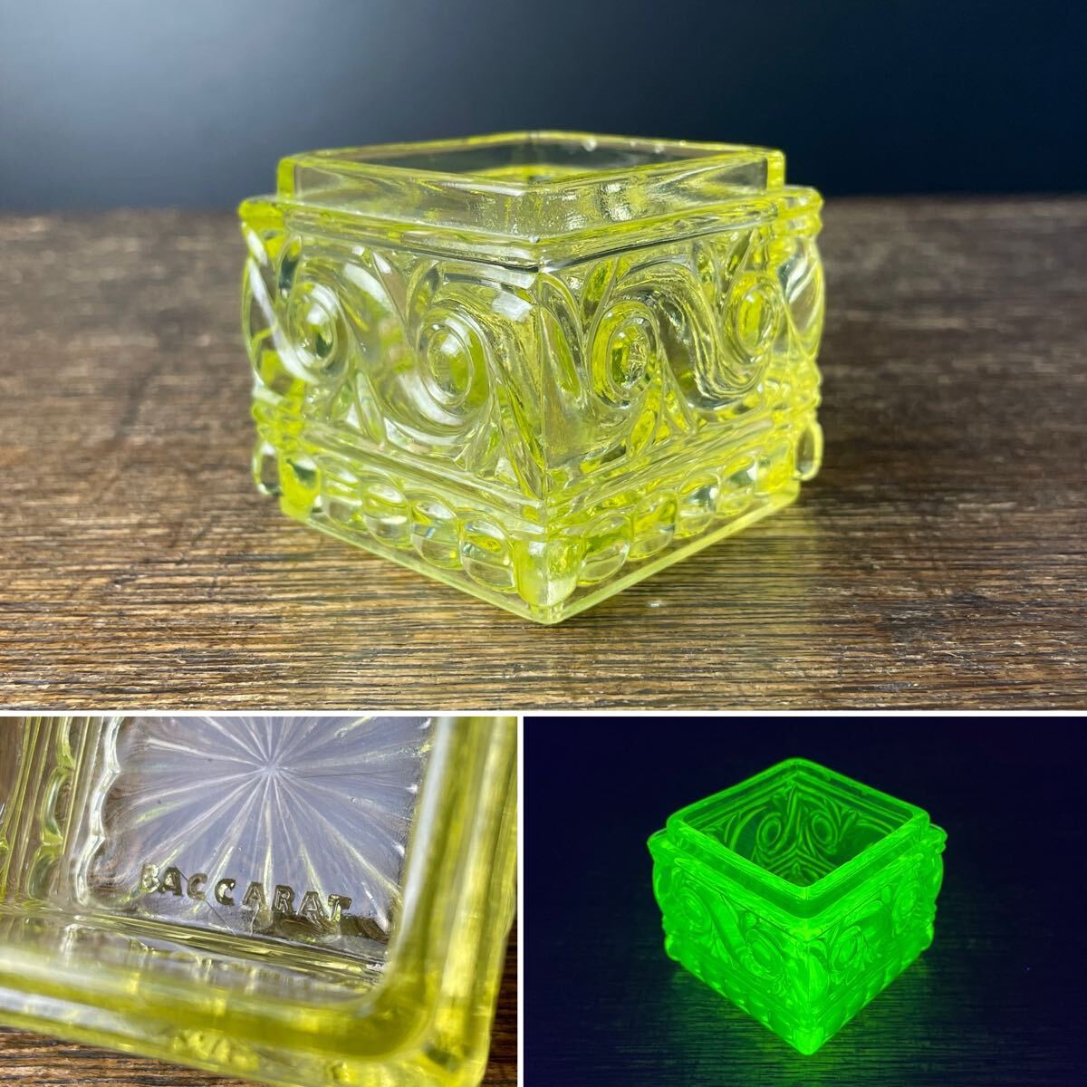 - 希少 オールド バカラ ウランガラス BACCARAT 小物入れ 筆入れ インク入 ウラン ヴィンテージ ガラス 時代物 古ガラス 小 2