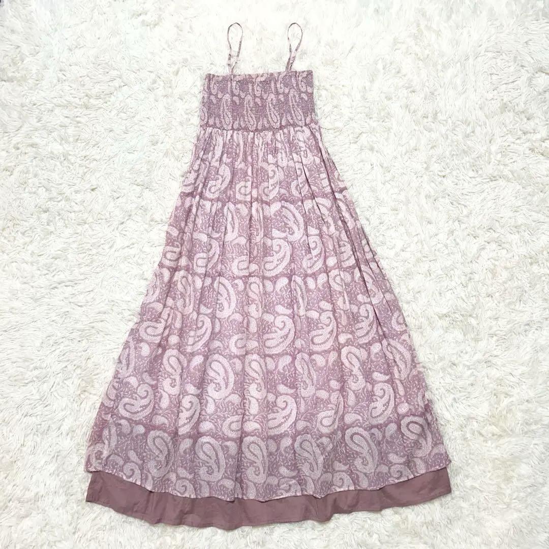 - 希少 MARIHA マリハ 草原の夢のドレス ペイズリー柄 シャーリング仕様 キャミワンピース ピンク パープル コットン ロング丈 フリーサイズ