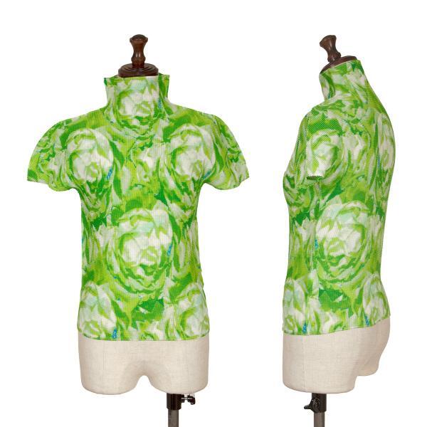 > イッセイミヤケミーISSEY MIYAKE me ストレッチプリーツマーブルフラワープリントカットソー 緑F