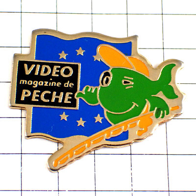 - ピンバッジ・緑色の魚の魚釣りフィッシング星の欧州旗EU欧州連合◆フランス限定ピンズ◆レアなヴィンテージものピンバッチ