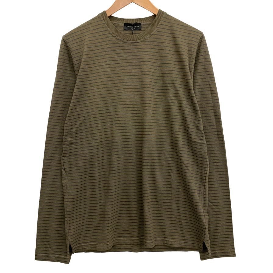 - 新品同様◆Tシャツ ロベルトコリーナ Tシャツ ロングスリーブ ボーダー リネン混 コットン カーキ サイズ48 メンズ【AFB41】