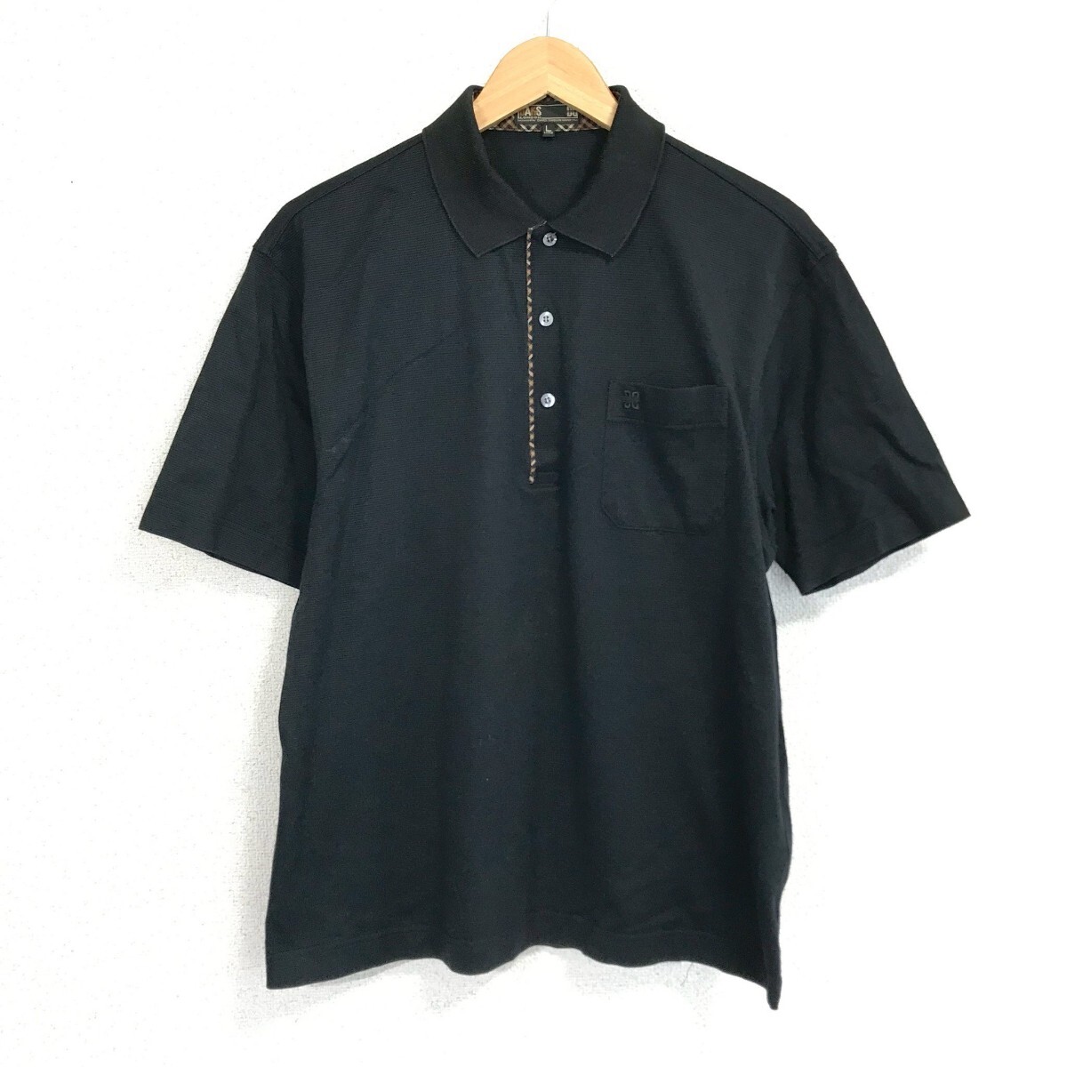 > h3343dL 日本製 DAKS LONDON ダックス ロンドン サイズL 半袖ポロシャツ ロゴ刺繍 ポケット ブラック 黒 綿100% オンワード樫山