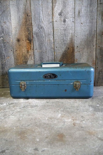 - ビンテージOldPalタックルBOX [gotf-105]検アメリカUSAバス釣り道具入れ1960年代頃MOTORキャンプ雑貨ガレージインテリアメタルケース工具