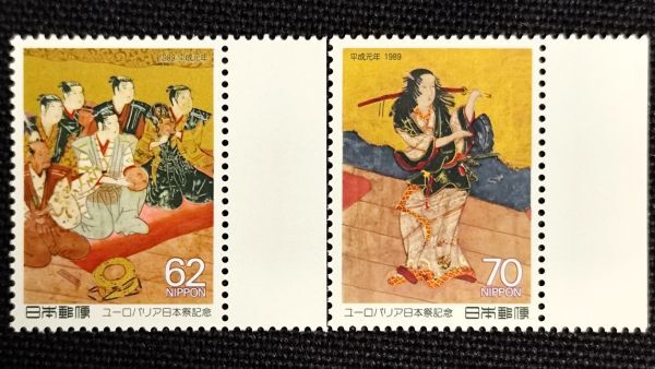 - [25062827]【ユーロパリア日本祭記念】単片2種「紙本金地著色阿国歌舞伎図」62+70円 1989年発行 美品