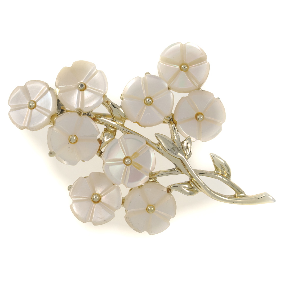 - UK3923◆ フラワーモチーフ パール風ホワイト系ストーン 色石 イギリス 英国 ◆ ヴィンテージブローチ ◆