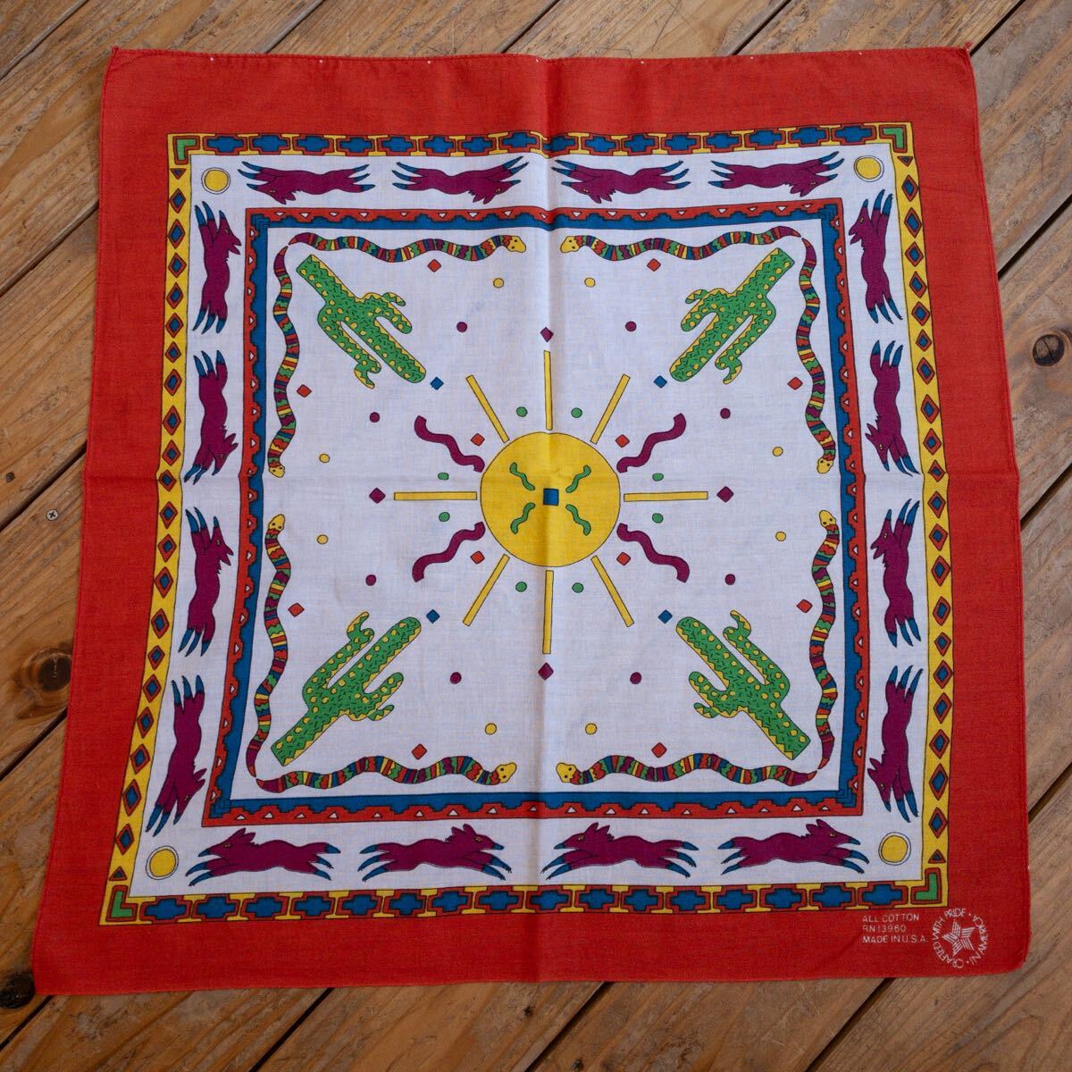 - 送料無料 Vintage バンダナ ネイティブ柄 ハンカチ アメリカ仕入れ 太陽 SUN サボテン ファッションコーデ 雑貨 ヴィンテージ A1642