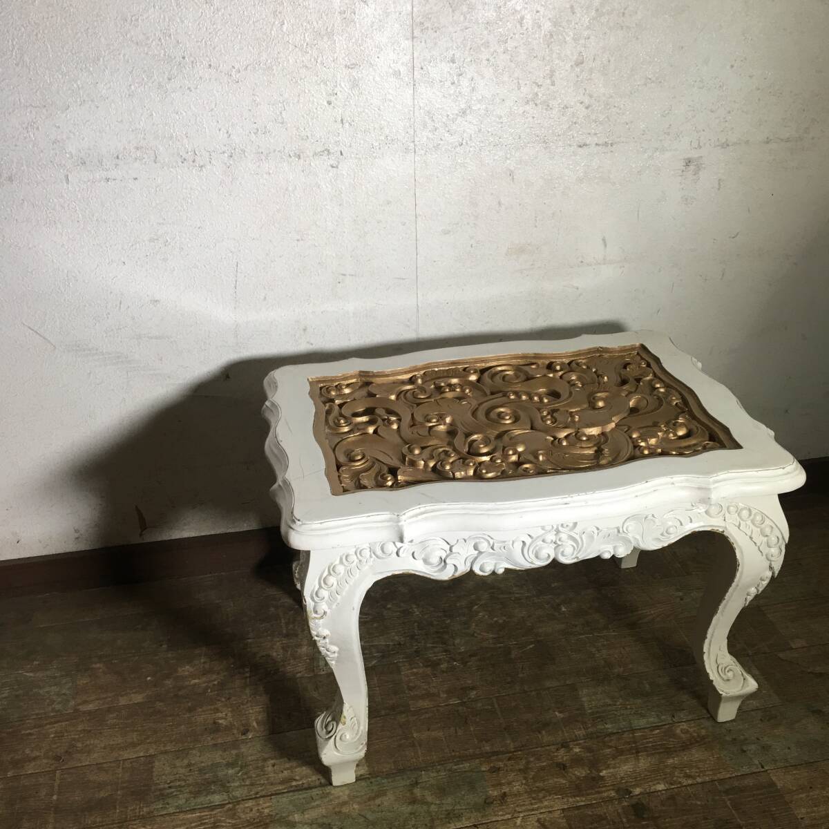 > FNY26/83 アンティーク 木製 彫刻 猫脚 ホワイト ゴールド コンソール テーブル 花台 飾り台 置き台 インテリア 家具 ロココ 装飾◇