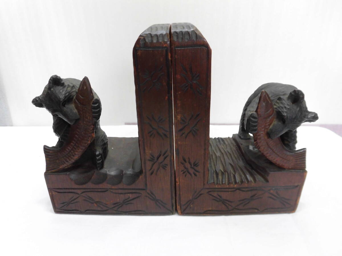 - 熊彫り=ブックスタンド=本立て(旭川=アイヌ=斎藤文雄作)北海道、旭川産