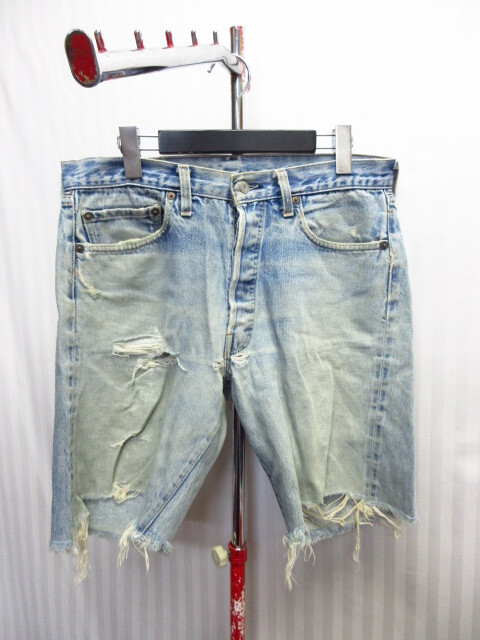 - USA製 リーバイス501 80sビンテージ ダメージジーンズ メンズW34 L 赤耳 オリジナル セルビッジデニムショーツ ショートジーンズ 06273